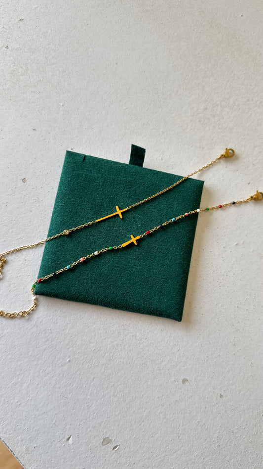 PromotionBracelet croix avec perle multicolore